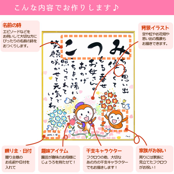 ※文字とイラストはサンプルです。 お客様に商品のご要望をいただいてから制作いたします。